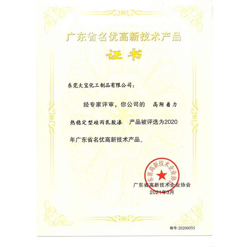 廣東省名優(yōu)高新技術(shù)產(chǎn)品證書(shū)(乳膠漆)
