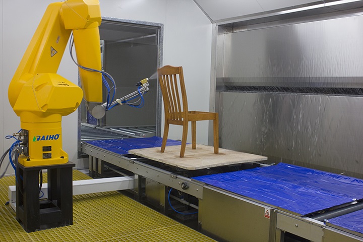 在國家與日俱增的環(huán)保政策要求之下,家具企業(yè)紛紛把“油改水”計劃提上了日程,眾所周知,油改水發(fā)展最大的瓶頸則在于水性涂料的干燥問題。有鑒于此,大寶漆特聯(lián)合中國科學(xué)院電子計算研究所,同時與設(shè)備供應(yīng)廠商合作,采用前瞻技術(shù),歷時近3年,經(jīng)過反復(fù)的溝通、協(xié)調(diào)及試驗,以解決水性家具漆自動化生產(chǎn)所面臨的重要問題為突破,共同研發(fā)了擁有專利技術(shù)的全方位立體干燥設(shè)備系統(tǒng),并率先打造了我國涂料界首家大規(guī)模的智能化涂裝測試線。
